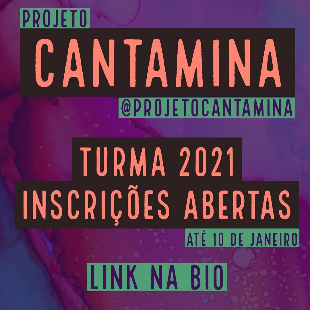 Coletivo Área de Atuação Música Funções Descrição curta Canta Mina é um projeto de aulas de canto, voltado para mulheres criado em 2019. Atualmente é ministrado pelas professoras Jéssica Cisne e Letícia Muniz. O projeto já conta com cinco turmas, que acontecem de forma online durante a pandemia. Site: https://instagram.com/projetocantamina Sobre Responsáveis Agenda Galeria eventos entre e Baixar Planilha Denunciar Contato Nome: E-mail: Tipo: Mensagem: Denúncia anônima Receber cópia da denúncia Cancelar Enviar Denúncia Enviando mensagem Nome: E-mail: Tipo: Mensagem: Mensagem anônima Enviar somente para o Responsável Receber cópia da mensagem Cancelar Enviar mensagem Enviando mensagem