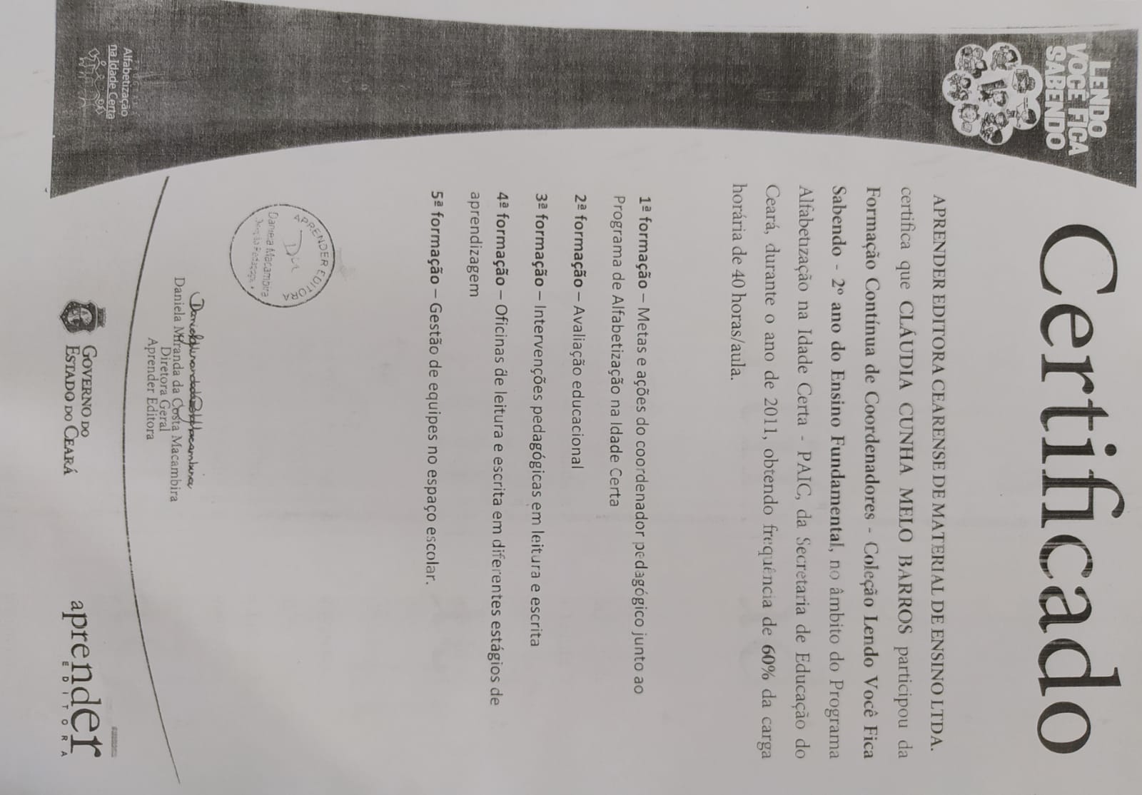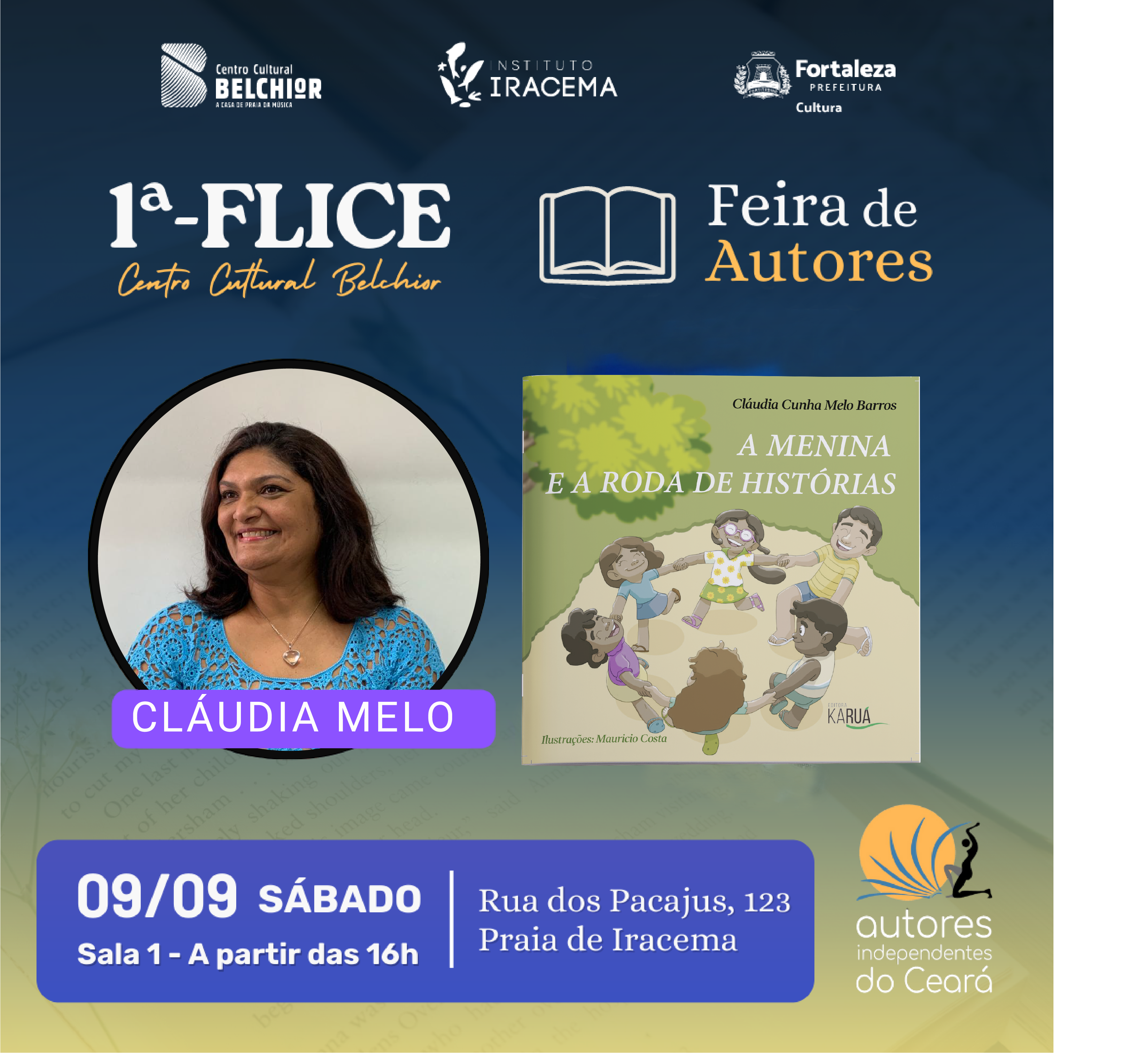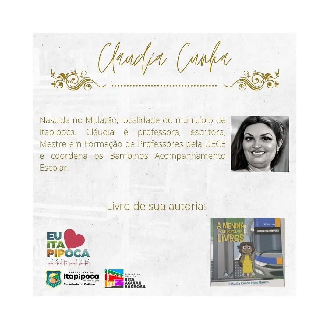 Cláudia Cunha Melo Barros é Pedagoga, doutoranda em Literatura e Crítica Literária (PUC-SP), mestre em Formação de Professores PPGE-UECE, especialista em Psicopedagogia.