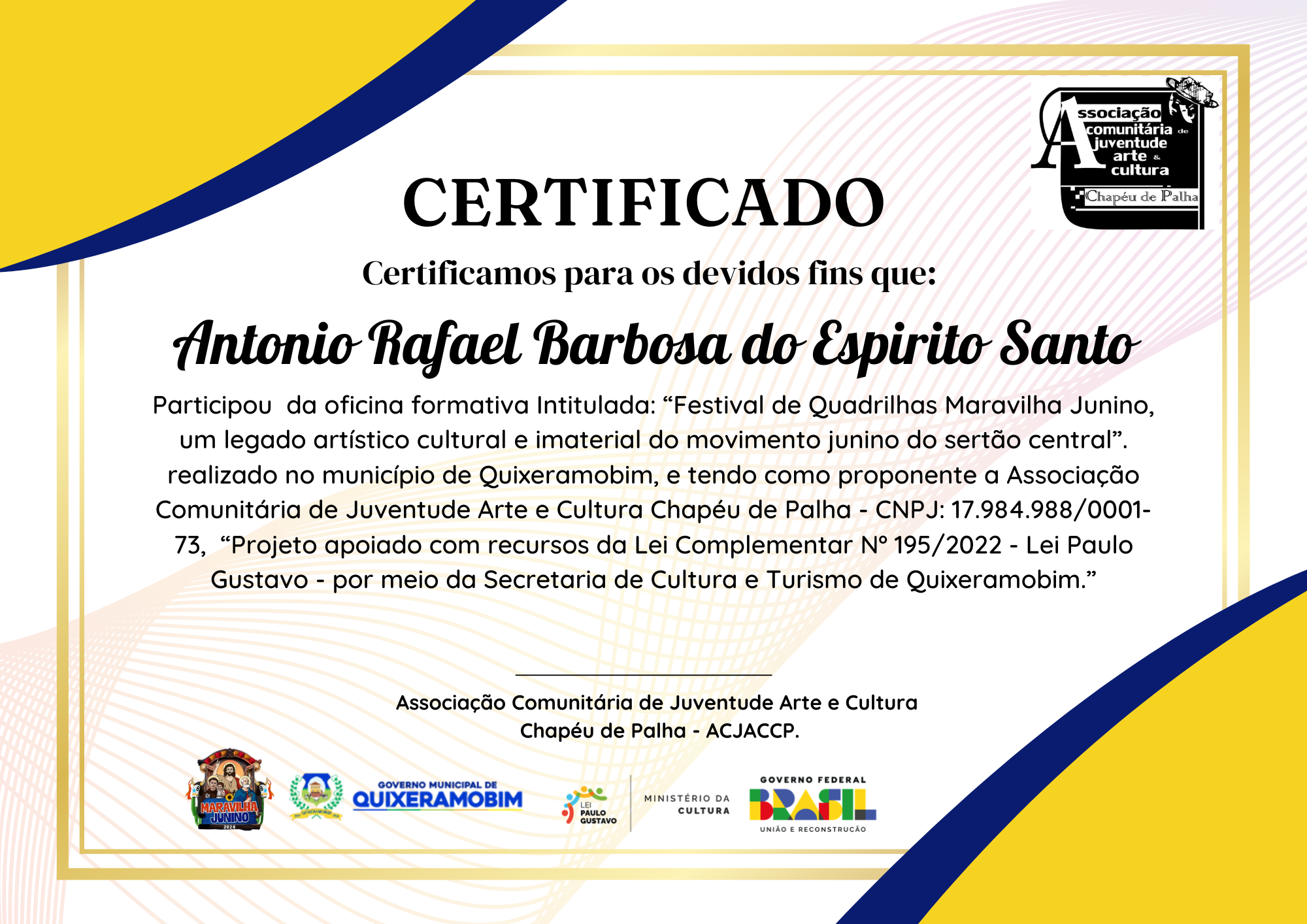 Associação Comunitária de Juventude Arte e Cultura Chapéu de Palha - ACJACCP