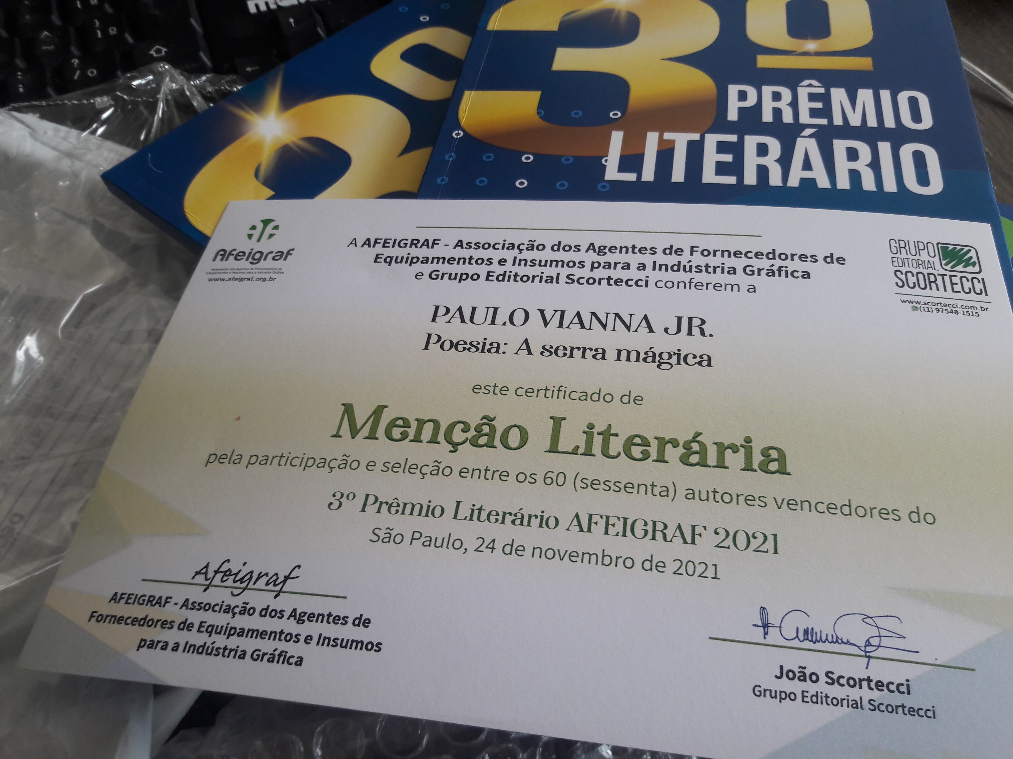 Prêmio Ideal de Literatura -no Paulo Vianna foi um dos premiados - categoria seleção