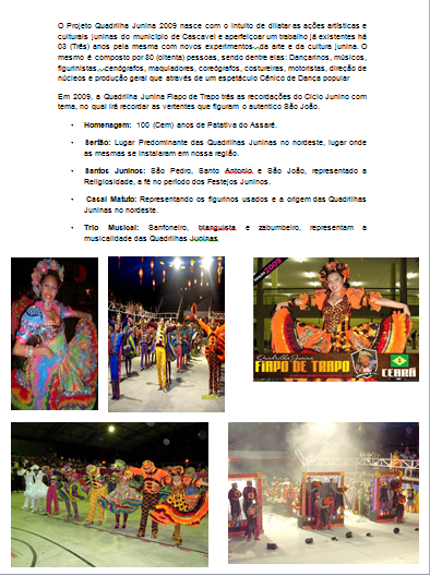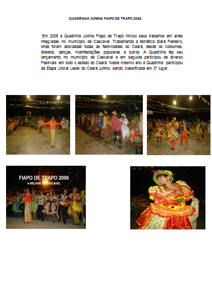 - Produção, Coreografia e Maquiagem da Quadrilha Junina Fiapo de Trapo de Cascavel/CE.