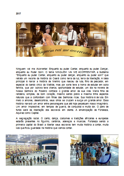 2017 - produtor do espetáculo junino " ninguém vai me calar enquanto eu puder cantar, ouvir e falar " quadrilha junina fiapo de trapo