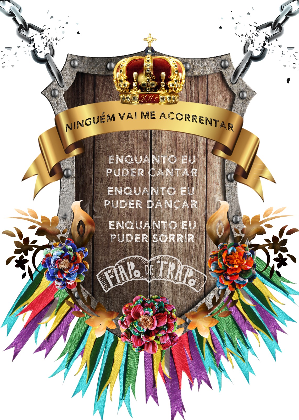 • Ninguem vai me Acorrentar: Enquanto eu puder Cantar, enquanto eu puder Dançar, enquanto eu Puder Sorri. O tema NINGUEM VAI ME ACORRENTAR, e Subtema “Enquanto eu puder Cantar, enquanto eu puder dançar, enquanto eu puder sorri” que retrata um recorte da história do Ceará como terra da luz, terra da libertação. A ideia principal é narrar a história de Menino que nasceu da luta, filho de pescador, em especial do bando chico da Matilde, mas por sorte teve a honra de estudar em outra familia, que por outrora teve chance, oportunidade de estudar, um dia na novena de Nossa Senhora do Rosário conhece o grande amor da sua vida. Maria filha de rendeira, simples, de bom coração, mesmo sendo pobre a mesma tinha aspectos naturais que a confundiam com filhas das Senhoras ricas. Sua história é de luta. Em meio a amores, desencontros, seus olhos se cruzam e surge um grande amor. Essa história narrará um amor entre personagens que até hoje perpetuam nosso imaginário. Um amor impossível, em tempos de guerra, de conquista e muita dor. O pano de fundo será da libertação dos escravos em diante. A emancipação de Fortaleza, Aquiraz como Capital. A segregação racial. O canto, dança, costumes e tradições africanas e europeias estarão presentes no figurino, cenários, adereços e musicas. Fortaleza sendo a primeira capital do Brasil a libertar seus escravos tem muita história a contar, muita luta que ficou guardada na história que vamos contar.