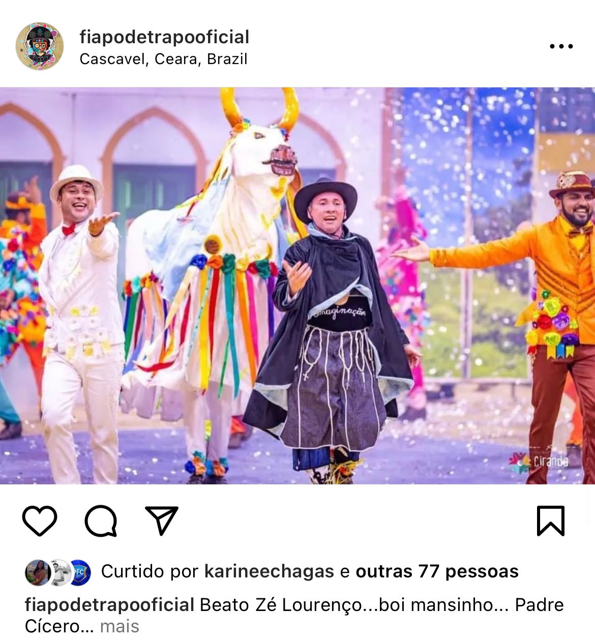 Apresentaremos uma história bastante curiosa que aconteceu no Cariri Cearense e "Aperreou a Imaginação" e a fé do povo. Trata-se de um presente recebido por Padre Cícero. Um boi zebu milagreiro que ganhou muitos devotos e virou santo. Se é verdade? Não sabemos. Mas aguardem que em junho vocês verão todos os detalhes nos Arraiás com a gente.
