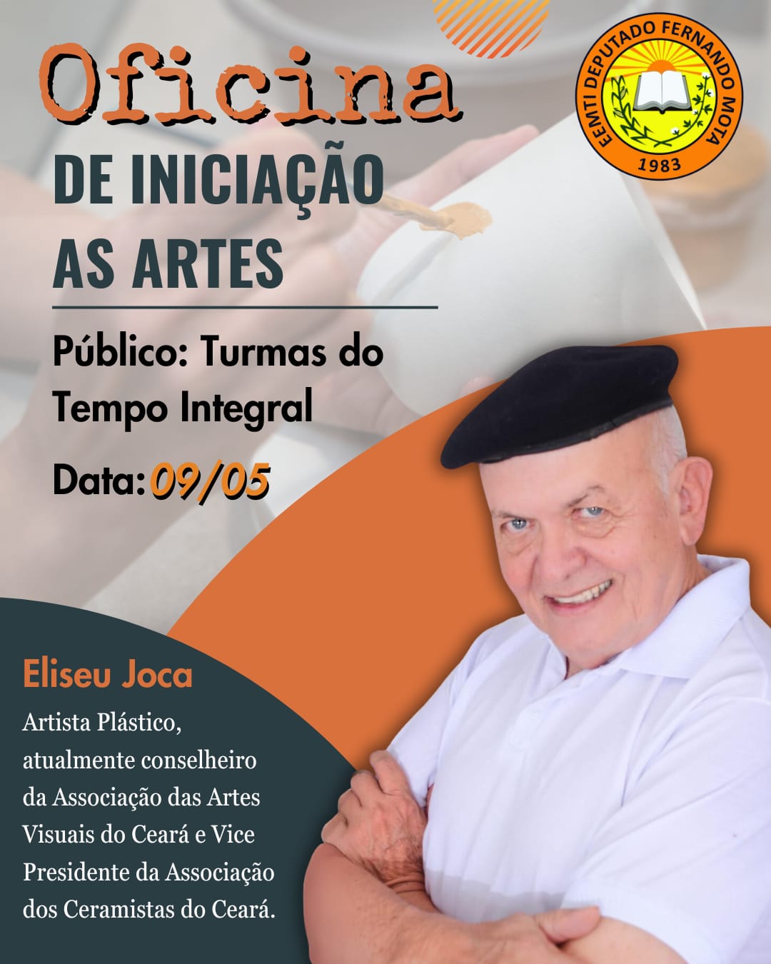 Eliseu Joca, nasceu em Fortaleza e cresceu no interior do Ceará. Inspirado pelo sertão de Tejuçuoca, começou sua jornada artística ouvindo chocalhos e aboios dos vaqueiros. Migrou para a Escola Técnica Federal do Ceará, participando do Salão de Abril em 1968. Estudou arte em Recife, Salvador, Rio de Janeiro, Brasília, somando 104 exposições coletivas e 37 individuais no Brasil e Europa. De volta ao Ceará, aplicou seus conhecimentos em desenvolvimento do semiárido e políticas públicas, recriando atividades artísticas com barro, pintura e escultura. Conduz seminários, oficinas e palestras, disseminando cultura na capital e interior.