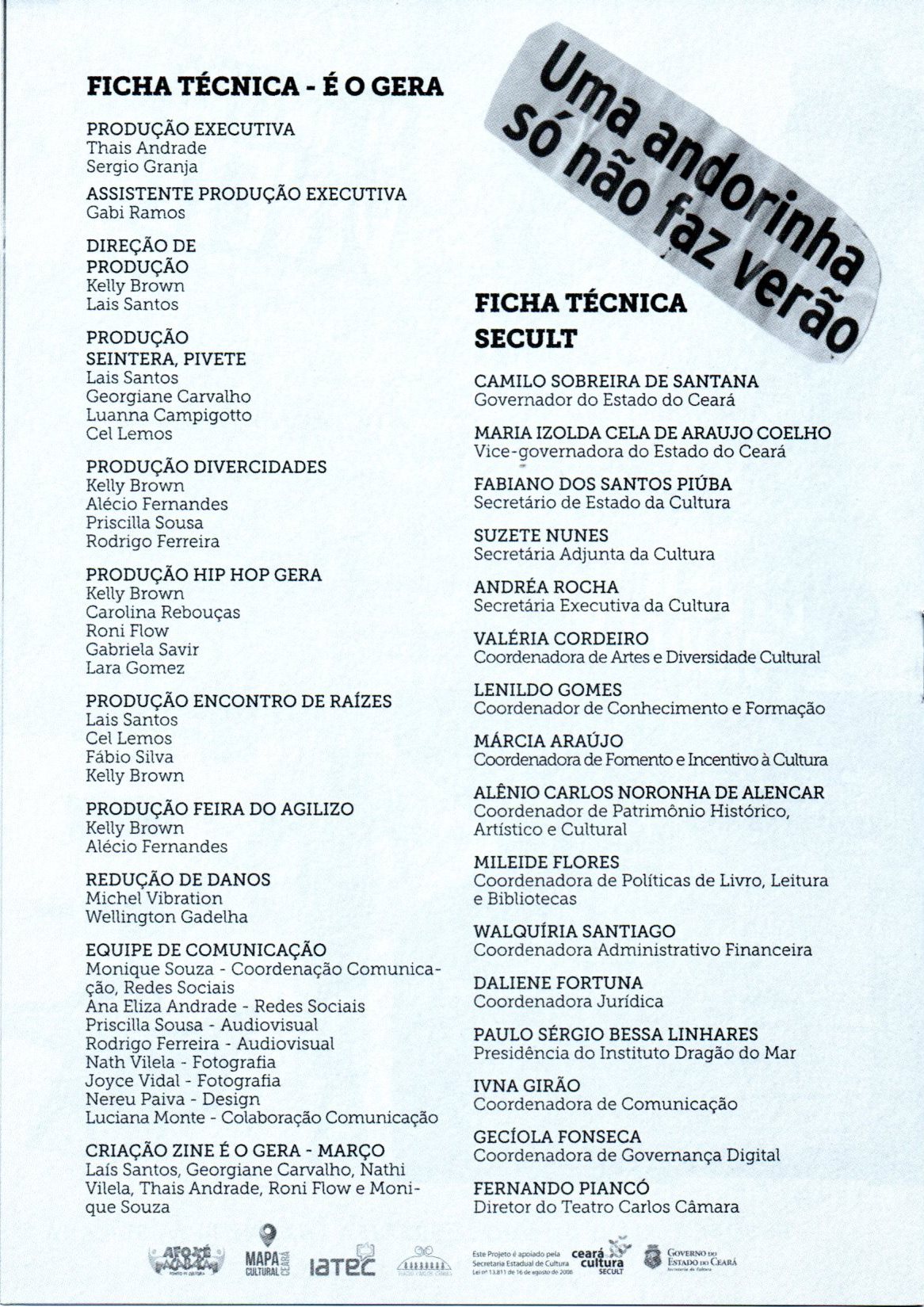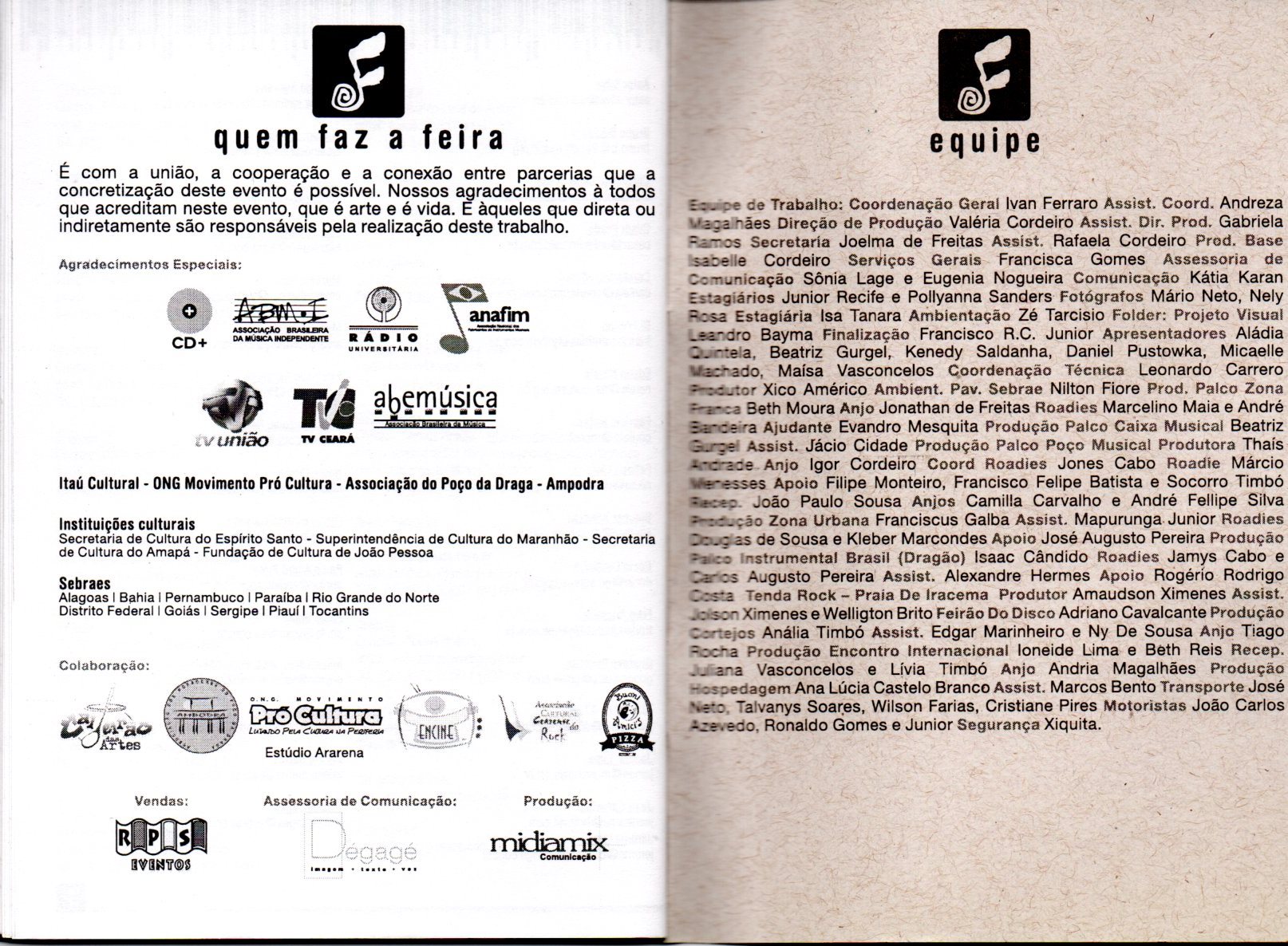 Empresa cearense destinada à produção de eventos culturais, agenciamento de artistas e elaboração de projetos para leis de incentivos fiscais, atuando desde 2003 em todas as linguagens artísticas, mas em especial na música e na cultura popular, com forte atuação na formação de agentes culturais da periferia. É responsável pela produção do Coco de Praia do Iguape do Mestre Chico Casueira.