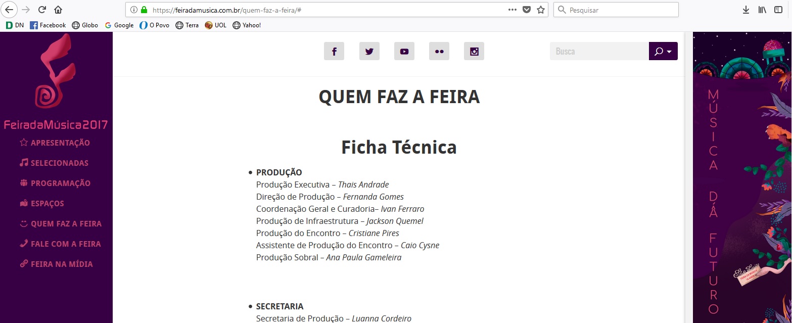 Atua como de produtor cultural, social media, prestação de contas. Participou de vários projetos, em diversas linguagens, como: Feira da Música, Encontro Mestres do Mundo, OFF Digital, Teatro Transcendental, Carnaval de Fortaleza, entre outros eventos.