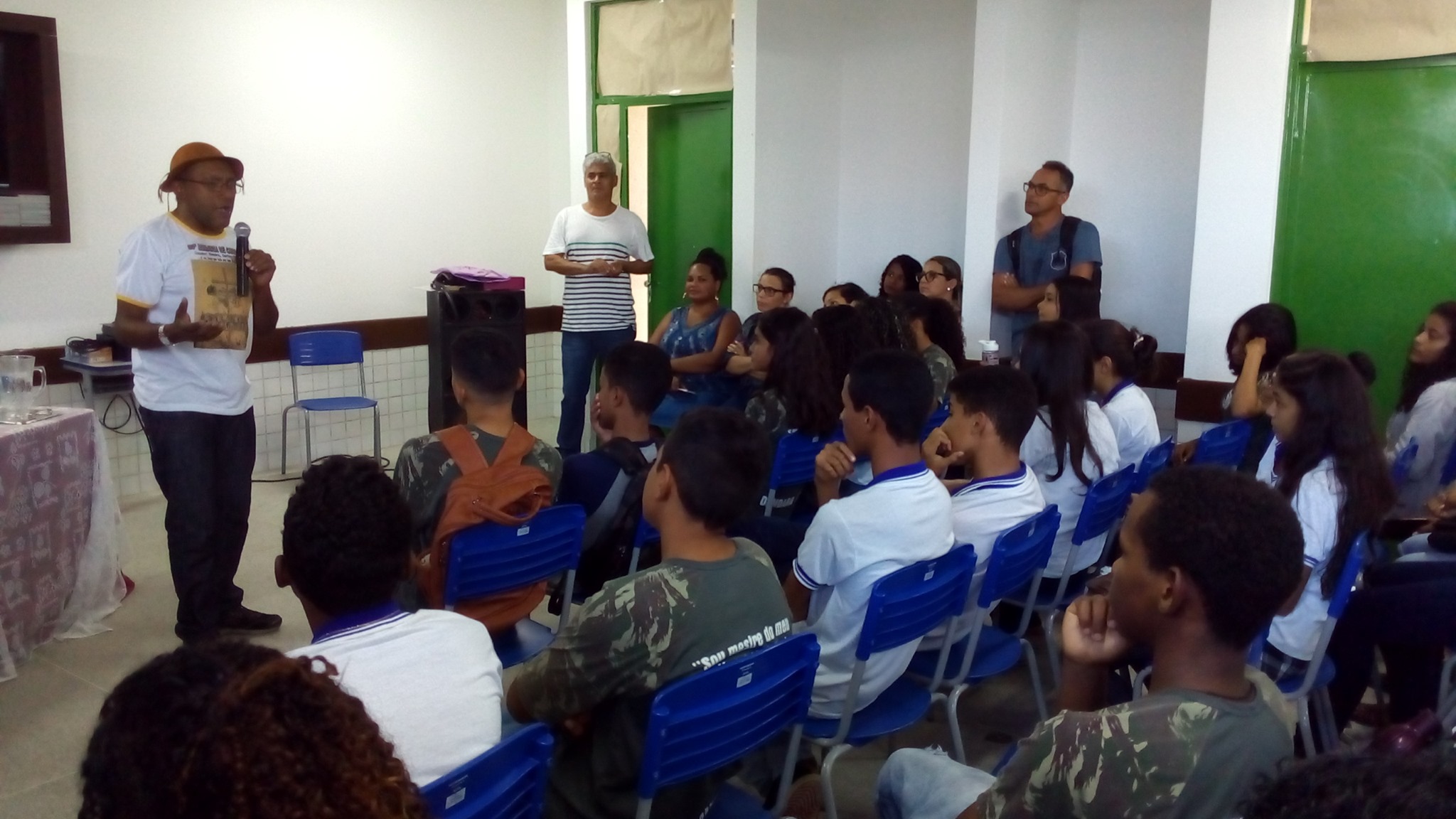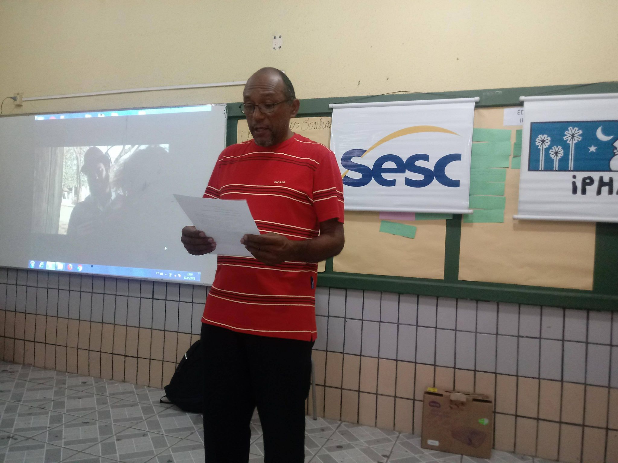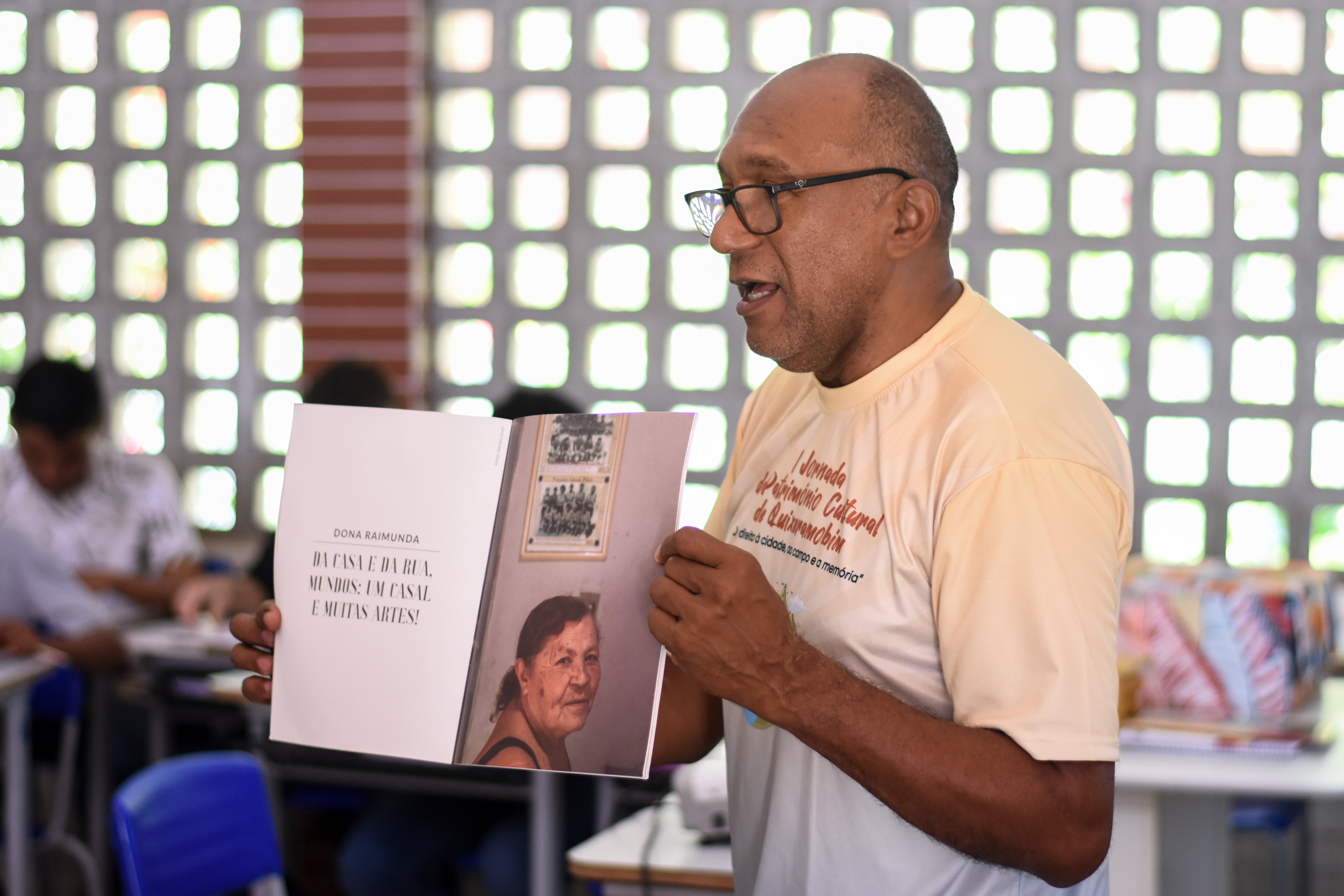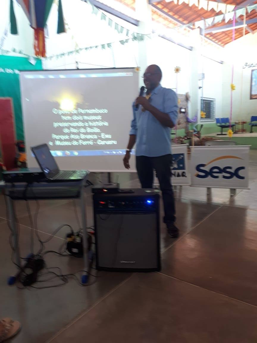 Oficineiro na I Jornada de Patrimônio Cultural de Quixeramobim, em ação na EEM do Campo Irmã Tereza Cristina, com a oficina sobre o acervo histórico de Quixeramobim. (2024)