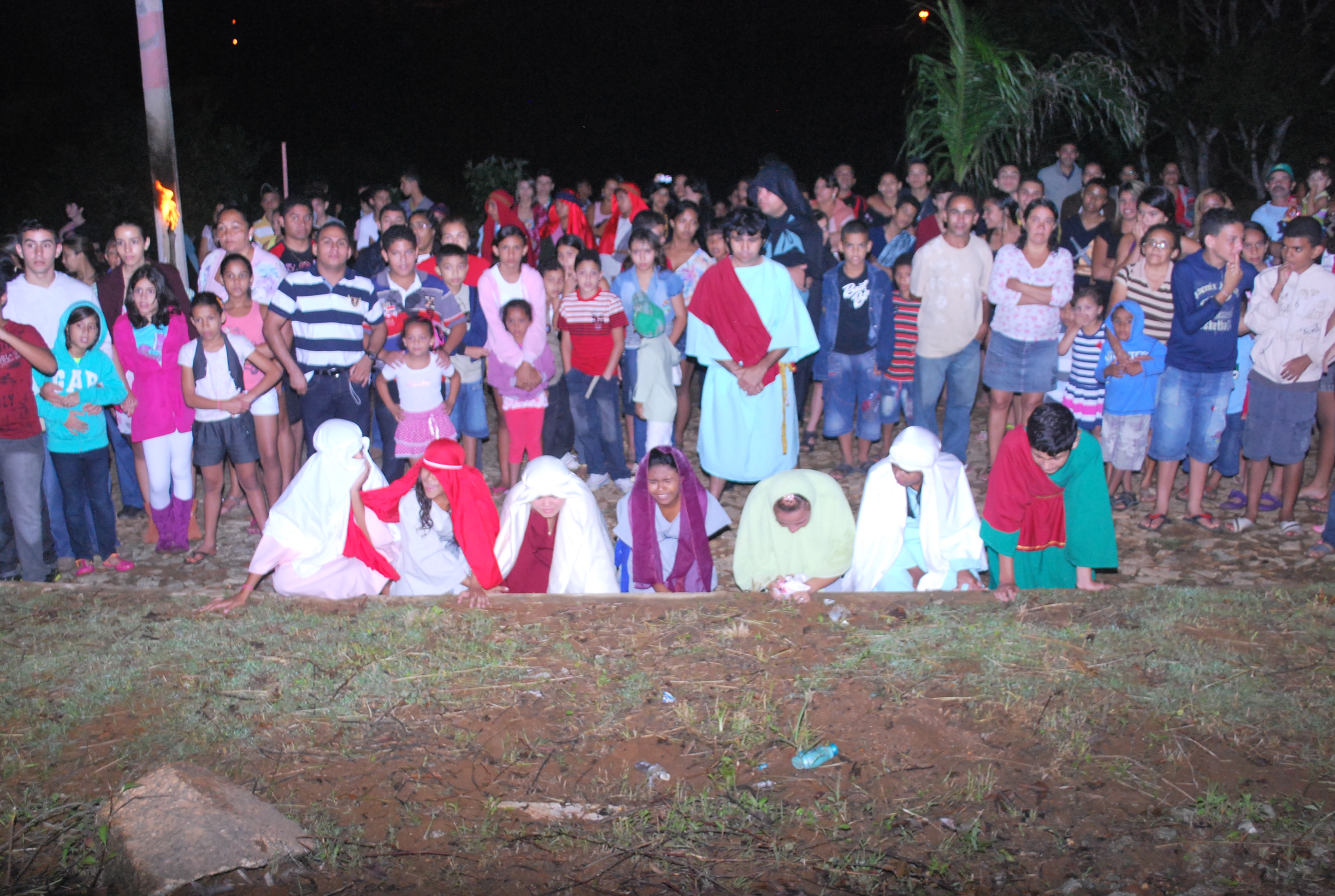 comunidade compareceu de forma maciça à primeira encenação, pelas ruas do