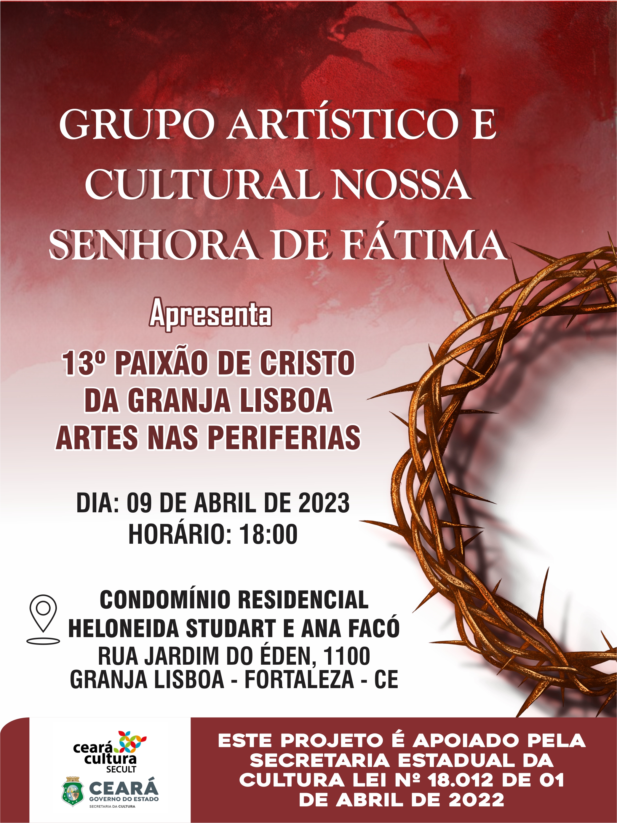 COLETIVO CULTURAL CRIADO EM 2011, NO GRANDE SIQUEIRA EM INTERCAMBIO COM A GRANJA LISBOA, QUE CONSISTE EM AGREGAR JOVENS E ADULTOS EM ATIVIDADES SOCIOCULTURAIS COMO: TEATRO, DANÇA E MUSICA, QUE REALIZA A PAIXÃO DE CRISTO DO GRANJA LISBOA - ARTES NAS PERIFERIAS.FAIXA ETARIA 14 A 33 ANOS