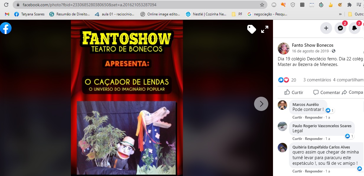 Com mais de 18 anos com Bonequeiro. Iniciou suas atividades com o grupo Fantoshow teatro de bonecos em outubro de 1994. Nos anos seguintes atuou nos movimentos sindicais em Fortaleza com espetáculos temáticos. No ano de 2000 fez parte da equipe do ônibus biblioteca viva da fundação de cultura de Fortaleza (Funcet) com oficinas de mamulengo, material reciclável, origami e espetáculos de bonecos levando uma linguagem lúdica.