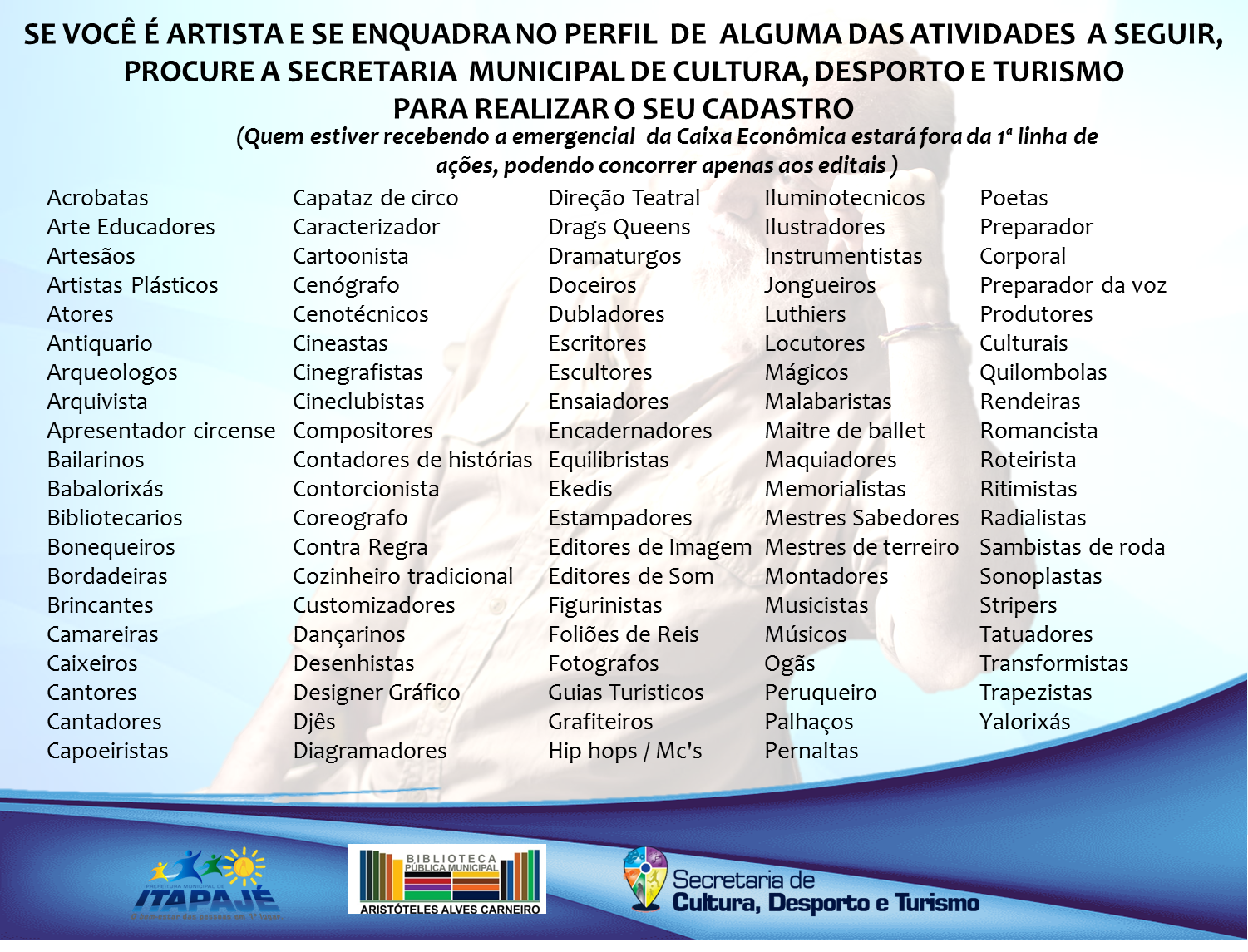 ÓRGÃO GESTOR MUNICIPAL DE CULTURA QUE ATUA NO FOMENTO DE POLÍTICAS, PROGRAMAS E PROJETOS QUE PROMOVAM AÇÕES LIGADAS A ÁREA DA CULTURA.