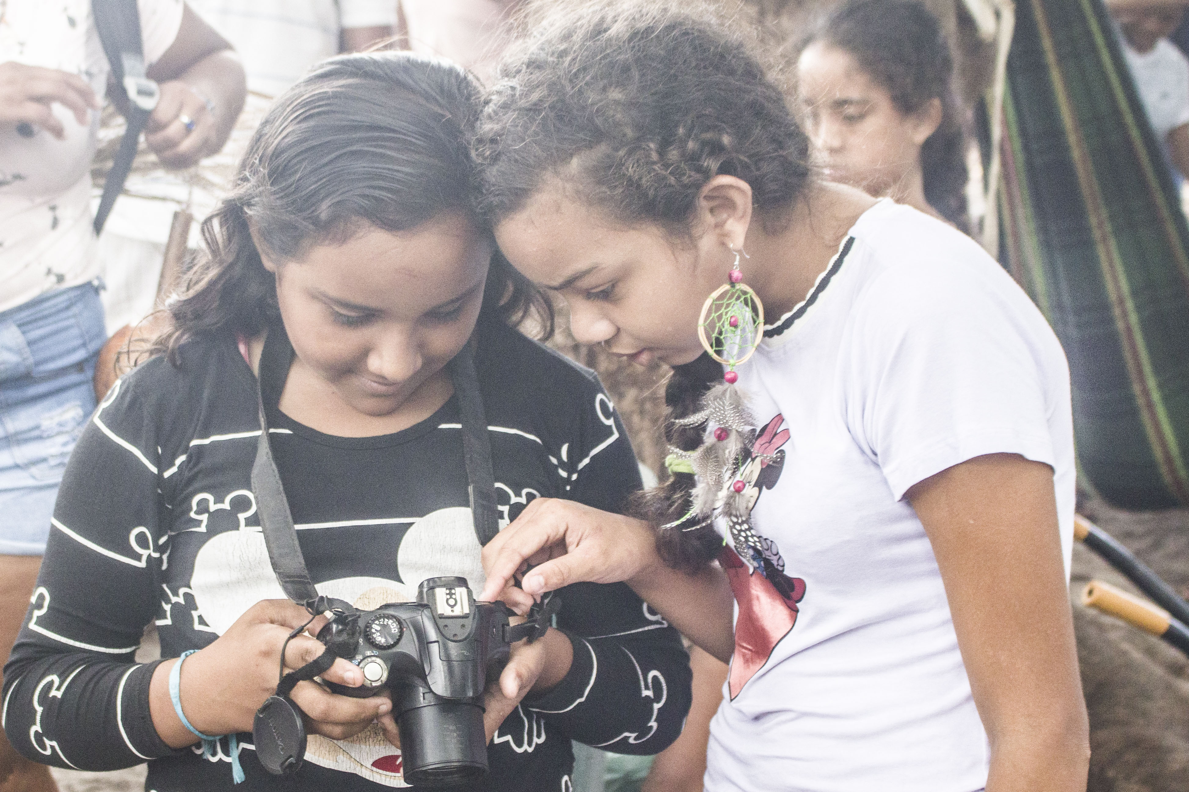 Também realizamos oficinas de audiovisual para os jovens indígenas , principalmente perto de algum evento na aldeia, : batismos , casamentos, festas ou reuniões.