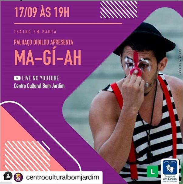Gravação e Produção do Vídeo Exibido na Ação: 0:32 / 1:00:35 Teatro em Pauta | Palhaço Bibildo apresenta "MA-GÍ-AH" + bate-papo ao vivo