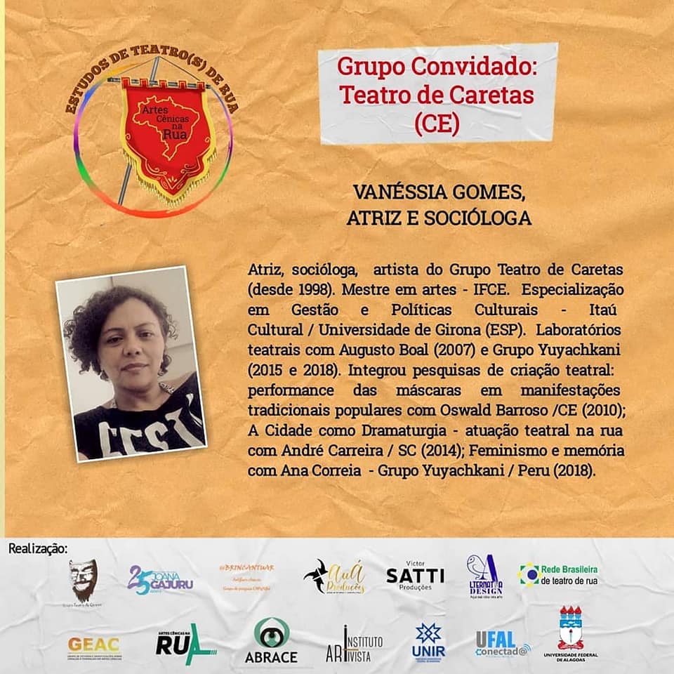 Atriz e pesquisadora em teatro. Formadora teatral e produtora. Doutoranda em Teatro (UDESC). Mestre em Artes (IFCE). Cientista Social (UECE). Artista do Grupo Teatro de Caretas. Participou de Laboratórios Teatrais: Augusto Boal, CTO, RJ - 2007, Grupo Yuyaschani 2015, 2023 (Peru), Eugenio Barba2022. Parecerista de projetos culturais e curadora de festivais de teatro. Consultora UNESCO 2013-2016.