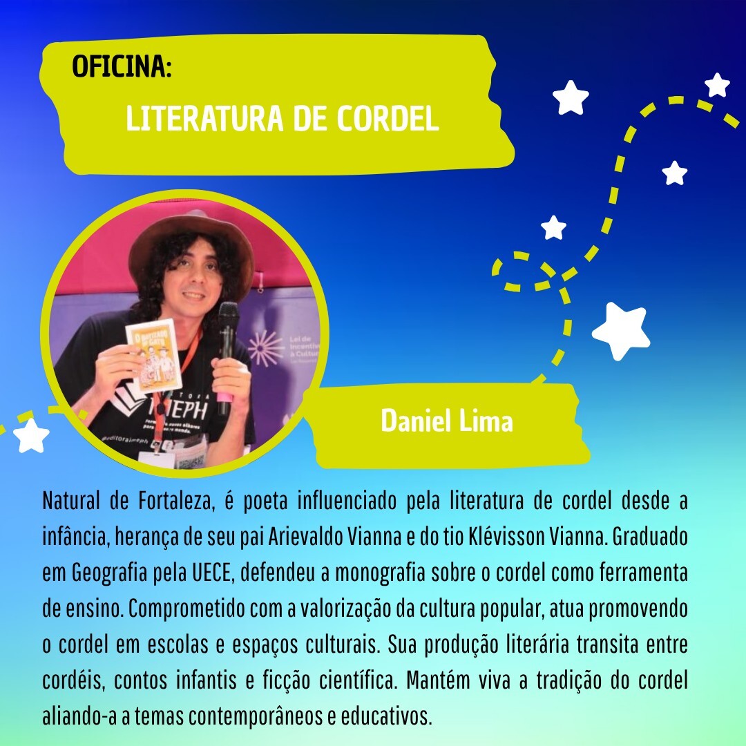 O encontro marca um importante momento na trajetória do coletivo, que nasceu com o propósito de levar luz à literatura destinada às crianças, valorizando narrativas que acolhem, encantam e transformam. Durante o Simpósio, haverá palestras, exposições e venda de livros, oficinas de escrita criativa, de desenho, de literatura de cordel, de contação de histórias, além de apresentações culturais e sorteios.