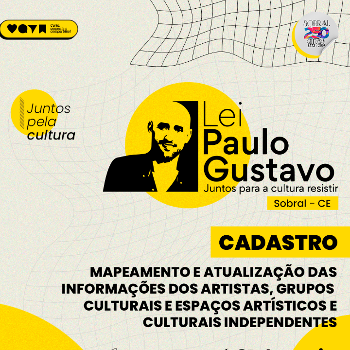 Este formulário, promovido pelo Comitê De Acompanhamento da Lei Paulo Gustavo Sobral, tem por objetivo cadastrar, mapear e atualizar informações sobre os(as) artistas, grupos culturais e espaços independentes do município de Sobral.