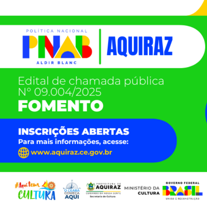 EDITAL 09.004/2025 - CP - SELEÇÃO DE PROJETOS PARA FIRMAR TERMO DE EXECUÇÃO CULTURAL COM RECURSOS DA POLÍTICA NACIONAL ALDIR BLANC DE FOMENTO À CULTURA – PNAB (LEI Nº 14.399/2022) AQUIRAZ